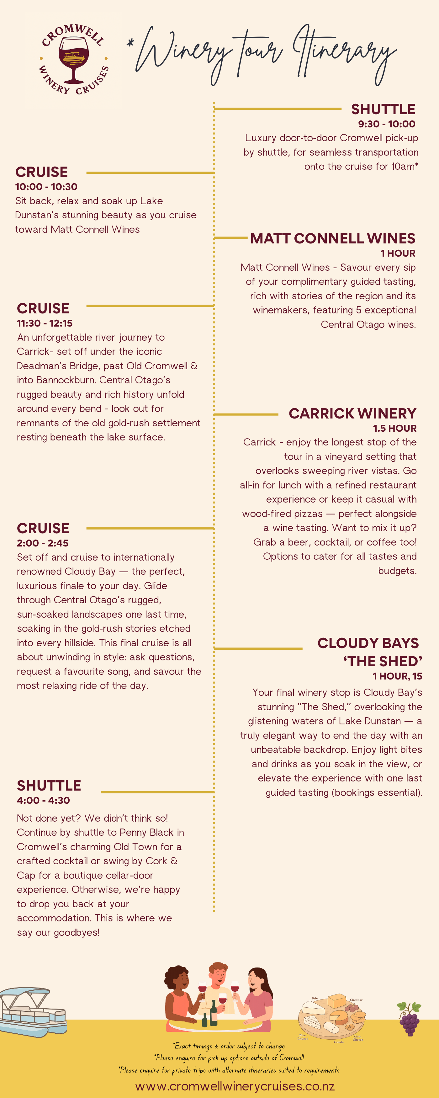 Our pontoon-style boat is perfect for tours. Its open style, spacious seating, comfy loungers with good tunes, combined with being out on the water is what makes us stand out from any other winery tour.